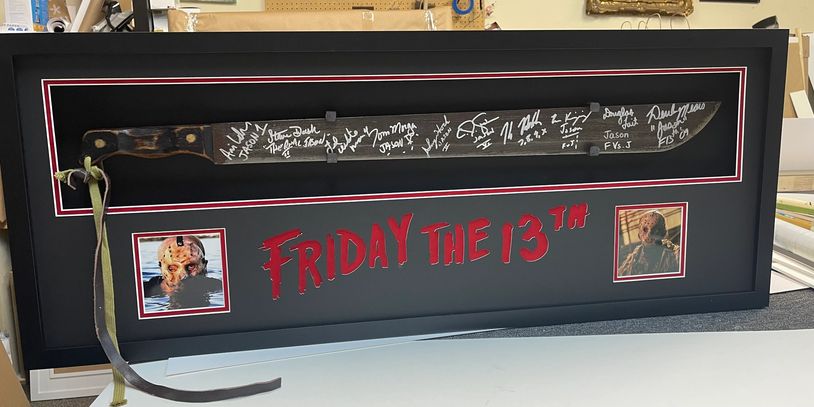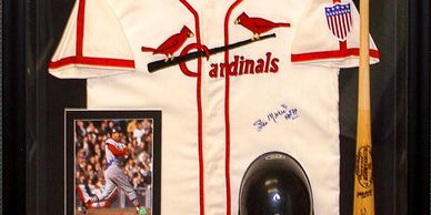 We frame football, baseball, basketball and hockey jerseys. We can include your favorite photo, patches, plaques or tickets. We can match any team color with our vast selection of mats.